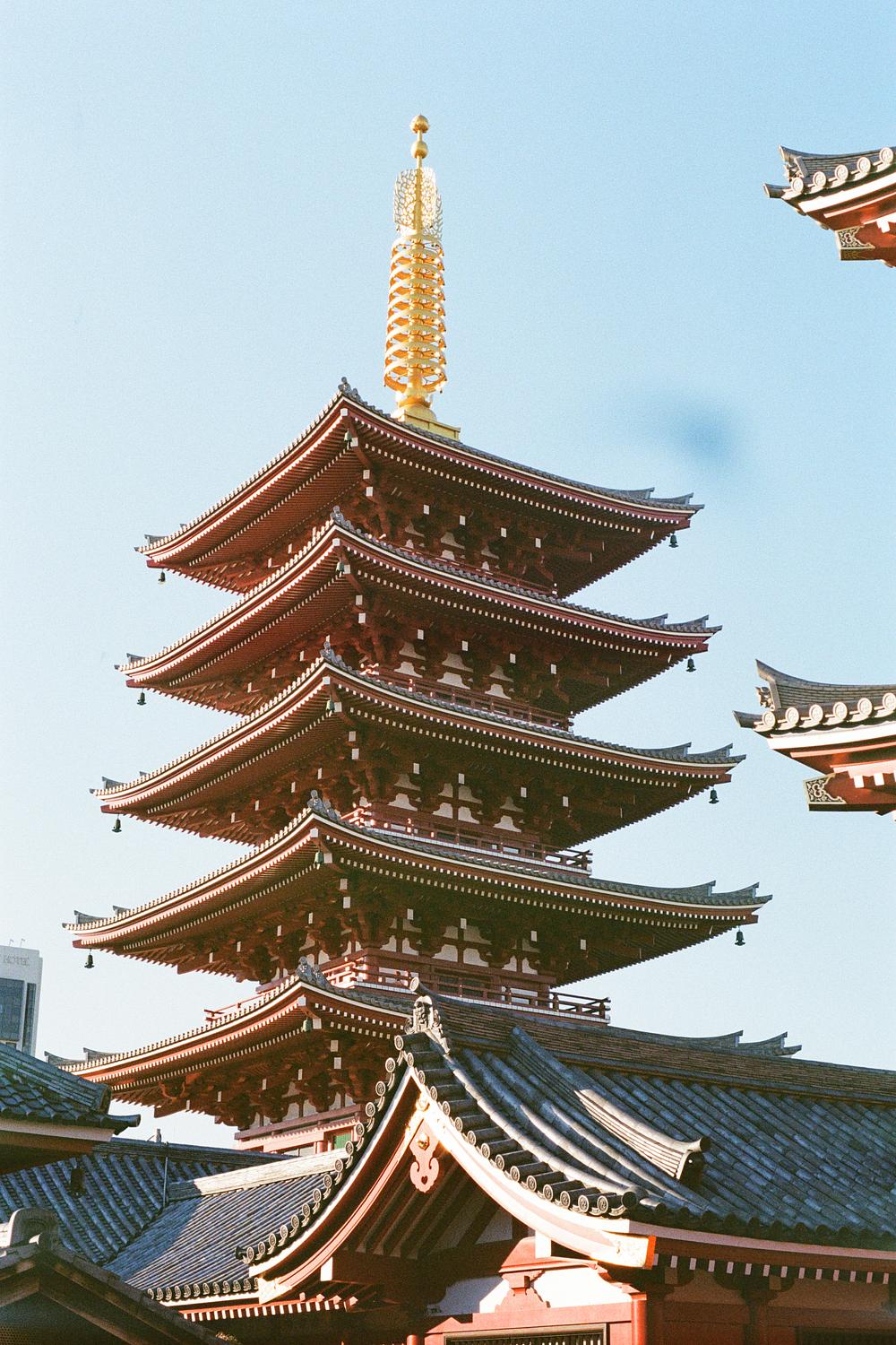 Rising gracefully above the temple grounds, Sensoji’s five-story pagoda stands as a timeless symbol of balance and devotion. Its elegant tiers catch the light and sky, connecting earth to the heavens in quiet harmony.
